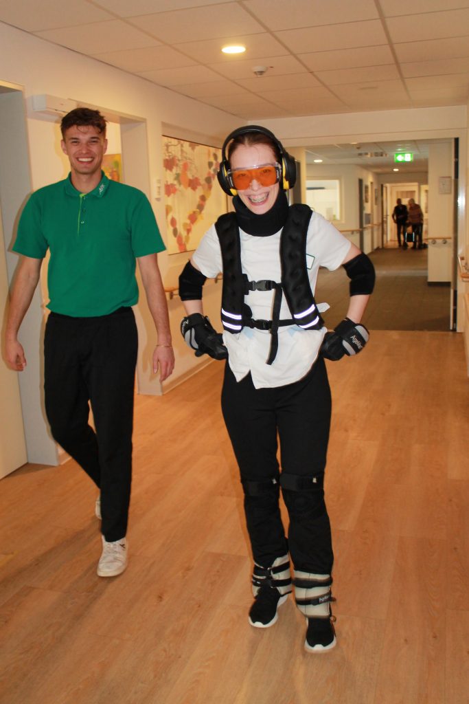 Ein weiteres Highlight war die Erfahrung, wie sich eingeschränkte Beweglichkeit und Sinneswahrnehmung im Alter anfühlen können. Mithilfe eines sogenannten Altersanzugs konnten unsere Mitarbeitenden hautnah erleben, mit welchen körperlichen Herausforderungen ältere Menschen im Alltag konfrontiert sind. Verschiedene Übungen machten die Auswirkungen auf Mobilität und Koordination eindrucksvoll spürbar.