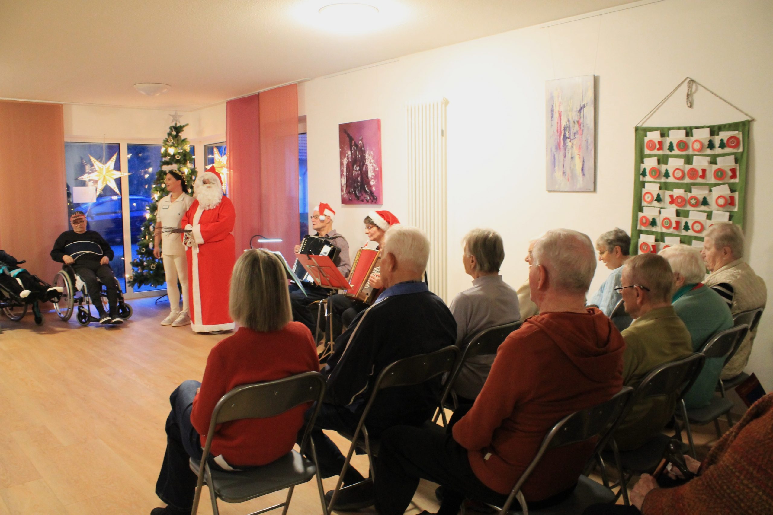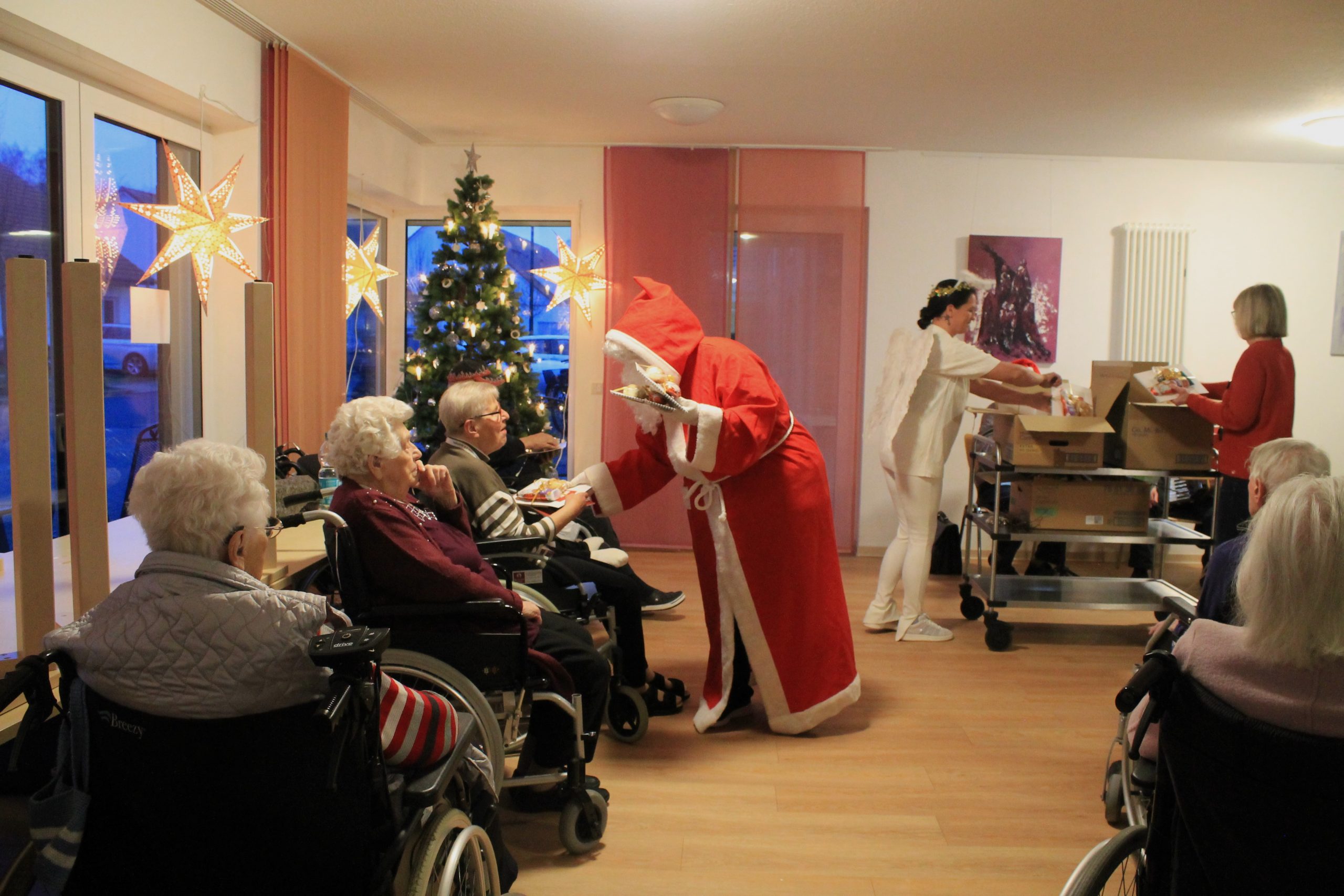 Am 22. Dezember 2025 war es wieder so weit: Unsere jährliche Weihnachtsbescherung für die Bewohner fand statt und zauberte ein Lächeln auf viele Gesichter. In festlicher Atmosphäre besuchten der Weihnachtsmann und einer seiner Engel unsere Einrichtung und verteilten liebevoll die Geschenke an unsere Bewohner. In diesem Jahr haben alle einen von der Einrichtung entworfenen Kalender 2026 mit süßen Anhang erhalten.