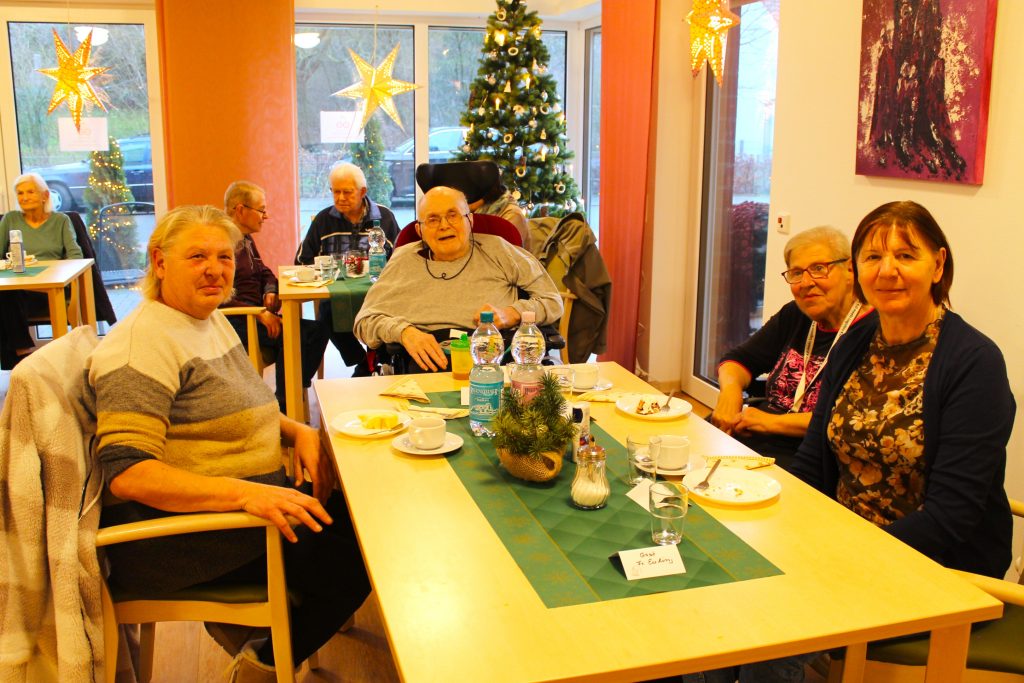 Unsere Weihnachtsfeier war ein voller Erfolg! In festlicher Atmosphäre und bei guter Stimmung wurde viel gelacht und gesungen. Geschichten wurden vorgelesen, Gedichte vorgetragen und Weihnachtslieder gemeinsam angestimmt. Ein besonderes Highlight war unser Musiker Herr Karasch mit seinem Akkordeon, der die Bewohner mit seinen Melodien verzauberte. Unsere Heimleitung hielt eine herzliche Rede, und bei Kaffee, Kuchen und Getränken genossen alle einen besinnlichen Nachmittag. Ein rundum wunderschöner Tag für alle!